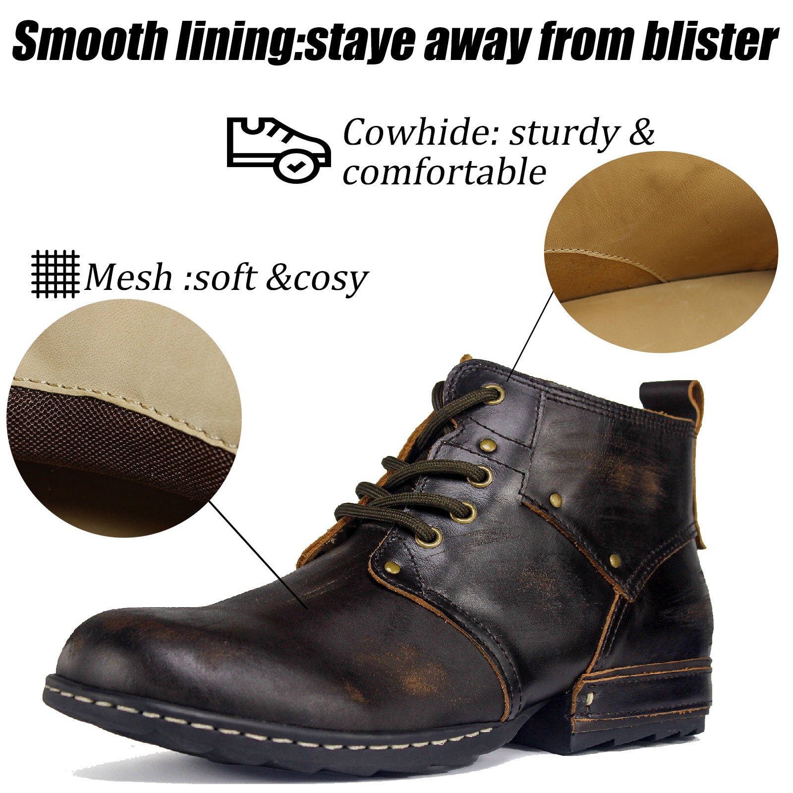 - Short Break-in Period: The lining of mens vintage dress boots is crafted from luxuriously soft, impeccably smooth, and long-lasting calfskin, which provides maximum comfort and prevents blisters, making the break-in period shorter